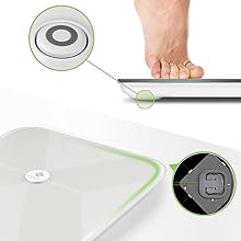 White LED displayStylish hidden LED display, which is self-Illuminated to provides bright and clear readout at any angle. Works even when not connected, data will sync to the APP once your phone is connected to the scale again! |